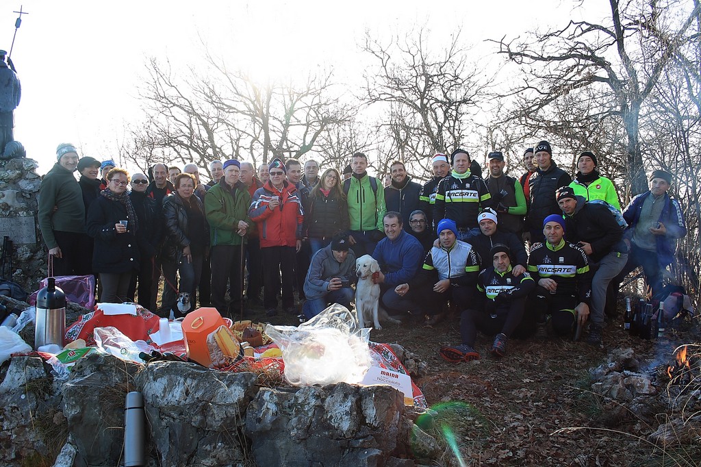 “Auguri! Auguri a tutti! Ciao come stai? Ci siamo anche quest’anno! E’ bello rivederci! ma che faticaccia! l’è dura!...” più o meno sono queste le prime frasi che echeggiano in vetta il primo gennaio al San Bernardo. Nel silenzio della mattina dopo la notte di botti di capodanno, ci si raggruppa per incamminarci. Alle 7 e trenta, il tempo incerto, la luce dell’aurora, un freddo accettabile mettono di buon umore i presenti e si parte. Il gruppo sale con piacevoli ha accompagnati per buona parte della salita, all’inizio dell’ultimo impegnativo tratto si dirada lasciando spazio una volta in cima al sereno: sotto di noi un mare di nebbia da cui spunta una corona di montagne. E’ tutto uno stringersi di mani con sorrisi che fanno capire che qui c’è aria buona, aria di amicizia. Come i maghi tirano fuori le sorprese dal cilindro, dagli zaini escono panettoni, spumanti, cioccolatini, caffè, the, pane e salame che vengono condivisi con tutti i presenti. Non si torna a valle senza aver intonato qualcuno dei tanti canti che ci rallegrano durante le nostre escursioni e non può mancare, alla fine “Dio del cielo” a ricordo di amici che non ci sono più. Una foto di gruppo per ricordo e piano piano la vetta di svuota e si ritorna a valle. L’augurio è che la semplicità e la serenità di questo incontro, che si ripete da 32 anni, lo stupore del paesaggio, conosciuto, ma ogni volta diverso, il piacere di stare insieme, ci accompagnino in tutto questo 2016.