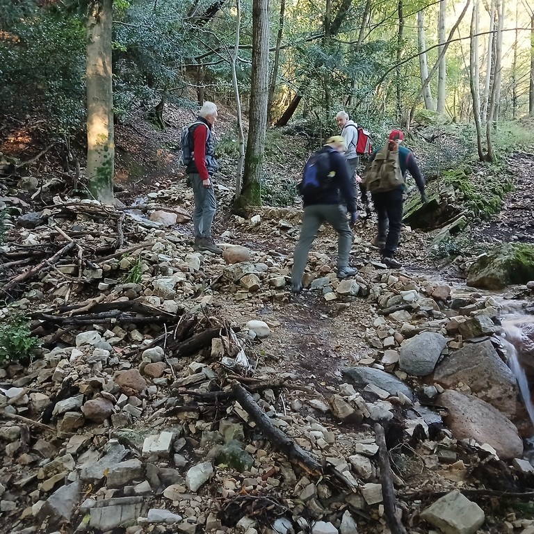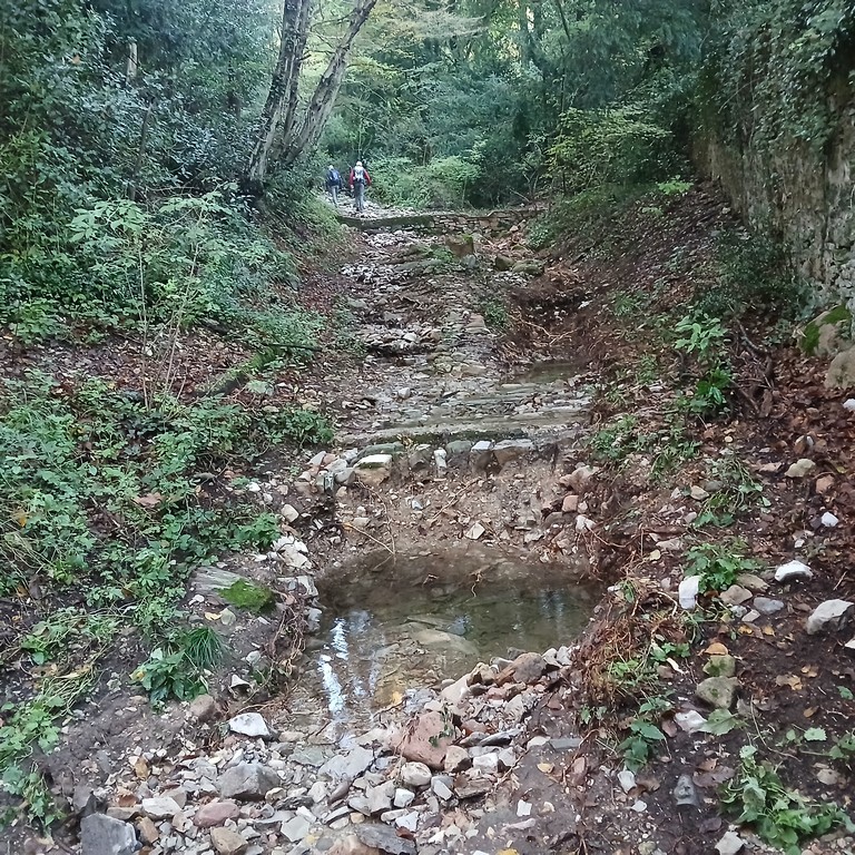 Paolo si è fermato nei pressi della piccola cascata con vecchi tubi rotti per rimuovere i rovi che hanno invaso il sentiero. Gli altri, arrivati allo Strologo si sono divisi in due squadre: una ha proseguito per l'Arco di roccia e il Monte Minisfreddo, l'altra ha seguito il sentiero per il San Bernardo. Ci siamo ritrovati tutti comunque al San Bernardo per uno spuntino.